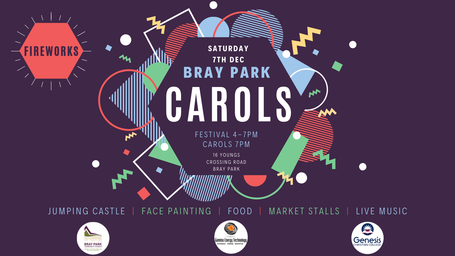 The carols will begin at 7PM with a show for the whole family. Bring your camping chairs and picnic rugs and sing the night away. The night will finish with a spectacular FIREWORKS display.