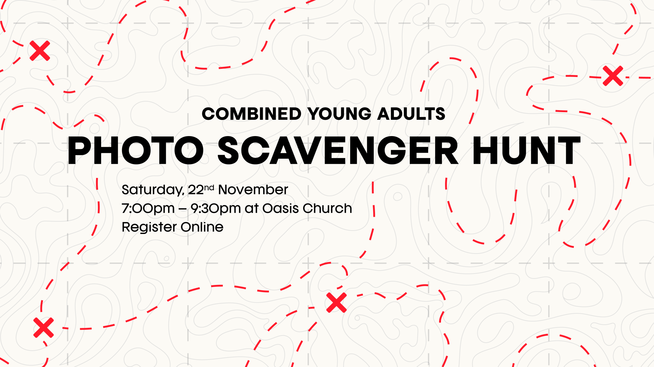 Join us as we gather with young adults from some like-minded churches for a photo scavenger hunt, followed by supper and a slideshow of all the photos. Please register online for catering and activity purposes.