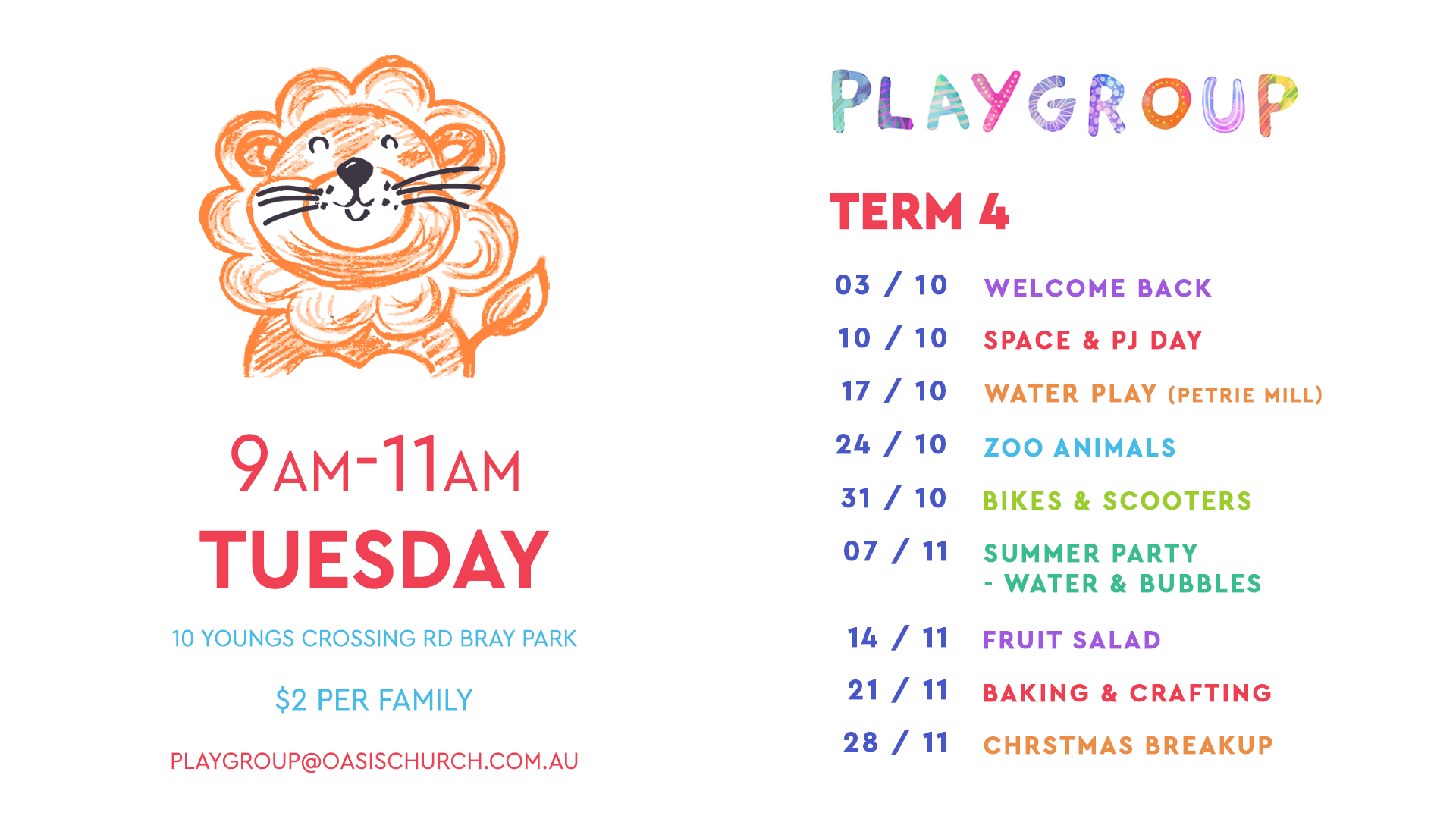 Email playgroup@oasischurch.com.au for more information
