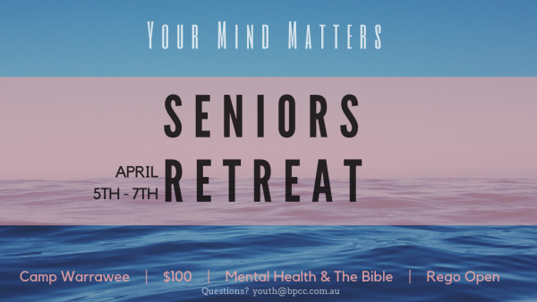 This is a relaxed weekend for our Yr 10-12s and leaders to spend time relaxing after term 1 exams, growing through discussion around the theme of mental health, and worshipping God together.