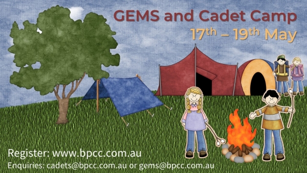CCC Campsite Cedar Creek Road, Sanford, Queensland, AustraliaGEMS and Cadets will be heading out to Samford for their annual combined camp. 17th-19th May 2019. REGISTER NOW!