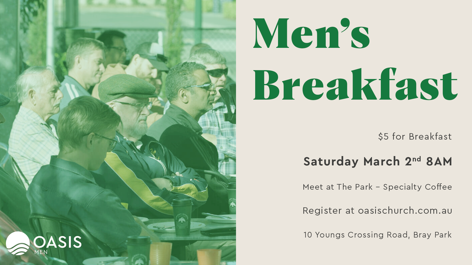 The Park Specialty Coffee 10 Youngs Crossing Road, Bray Park, Queensland, AustraliaJoin us for a morning of food, coffee, and camaraderie with the men from our church. During breakfast we will encourage